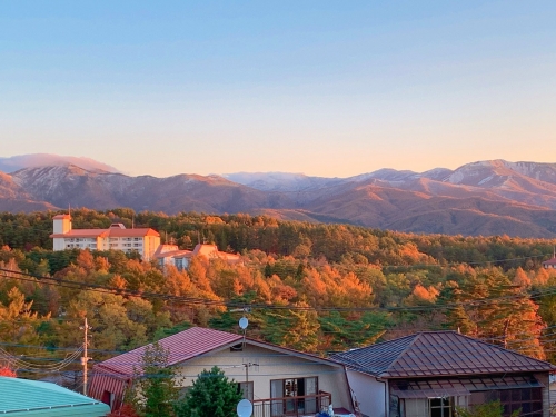 季節の話題 朝焼けに映える紅葉 タグ:秋 2020-11-01 21:35:29 昨日の早朝。 朝焼けに照らし出されるカラマツの黄葉と、白砂山に積もる雪。 足元のうるしには霜が降りていました 草津周辺の紅葉も、そろそろ終わりです。 これからは、草津までの道中で紅葉をお楽しみください。